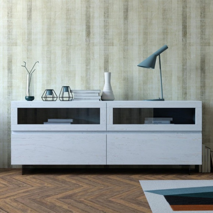 - Madia bassa 2 cassetti - 2 ante vetro ribalta - dimensioni: L.180 x P.48 x H.65 cm