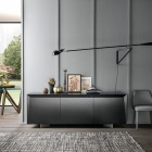 La madia Dama di Compar è una soluzione di design contemporaneo che unisce funzionalità e stile. Realizzata in MDF laccato, presenta tre ampie ante con bordi in legno massello, conferendo eleganza e robustezza. All'interno, due ripiani in vetro trasparente temperato garantiscono un'organizzazione ottimale e un'estetica raffinata. Perfetta per arredare soggiorni e spazi moderni, si distingue per la cura nei dettagli e la qualità dei materiali. Ideale per conservare oggetti, stoviglie o accessori, integrandosi armoniosamente in ogni ambiente.