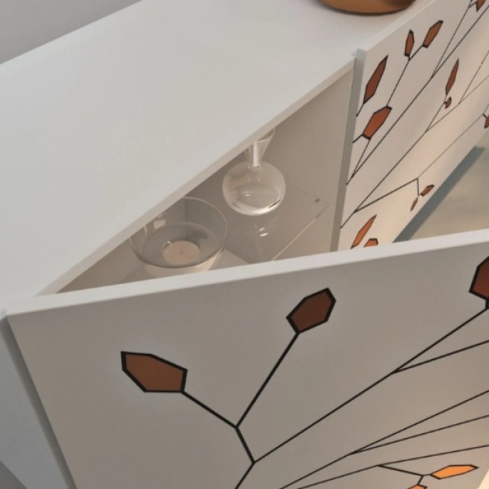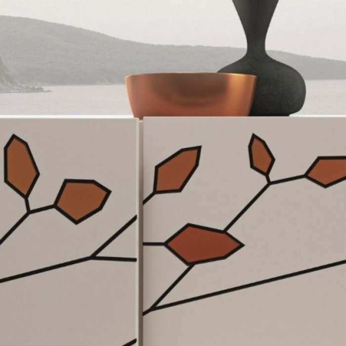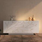 Le ante in laccato opaco della madia Flame sono arricchite da un elegante decoro inciso, che conferisce un tocco di classe al suo design sofisticato. Con un'ampia gamma di finiture tra cui scegliere, puoi personalizzare questa madia per adattarla al tuo stile e alle tue esigenze di arredamento.