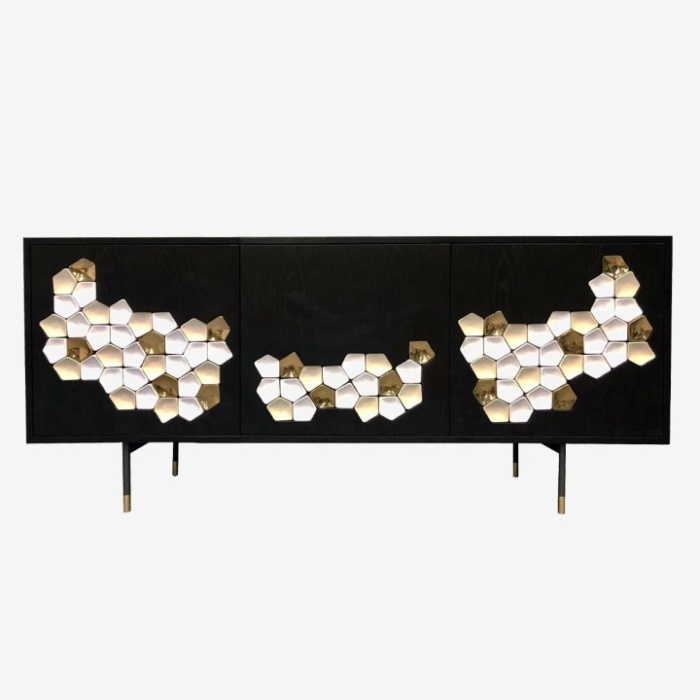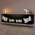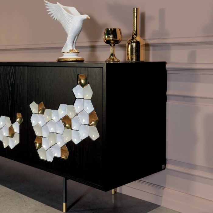 L’alternanza delle tonalità e la lucentezza dei materiali danno vita a un insieme scultoreo, che trasforma la madia in un elemento d’arredo iconico, scenografico, capace di esprimere lusso, creatività e passione artistica. Gaudì è molto più di un contenitore: è un vero e proprio capolavoro decorativo che arricchisce l’ambiente con personalità e raffinatezza.