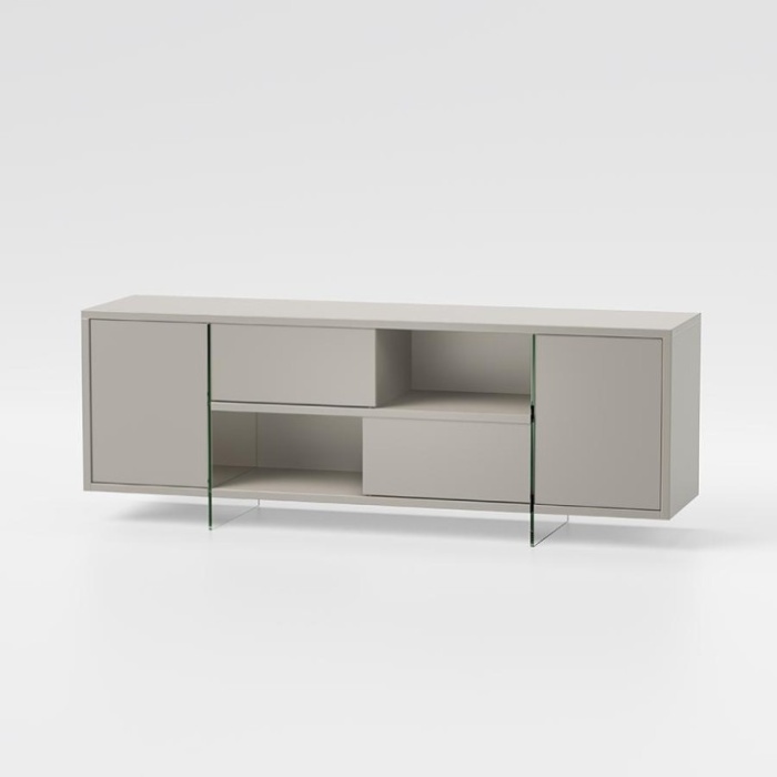 L'interno della Madia Madison è suddiviso in modo intelligente grazie a due pannelli in vetro temperato trasparente da 10 mm che sotengono l'intera struttura garantendo un supporto robusto e stabile come eleganza e leggerezza visiva.