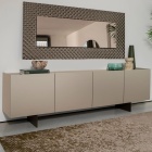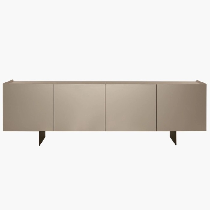 Lineare, contemporanea, versatile: questa madia contenitore si distingue per un’estetica pulita ed elegante, pensata per adattarsi con naturalezza a qualsiasi ambiente living, dal più moderno al più sofisticato. Dotata di tre o quattro ante, è completamente rivestita esternamente con una pellicola effetto champagne o bronzo, applicata con tecnologia post-forming, che ne valorizza le superfici con una finitura luminosa e raffinata. I piedini in metallo verniciato slanciano la struttura e aggiungono un dettaglio dal sapore contemporaneo, contribuendo a creare un’immagine d’insieme armoniosa ed equilibrata.