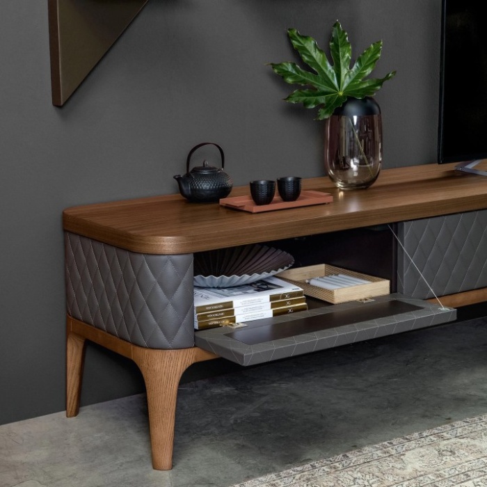 Disponibile anche nella versione porta-TV, Tiffany è un elemento capace di impreziosire ogni zona giorno con eleganza senza tempo, cura nei dettagli e una forte identità estetica. Un oggetto pensato per chi ricerca bellezza, funzionalità e unicità.