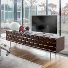 Un programma per il living, dove spazi e linee hanno un ruolo fondamentale nella costruzione di un’estetica coerente e raffinata. Le madie e i porta-TV Honey si distinguono per la complessa e pregiata lavorazione dei legni utilizzati, disponibili nelle varianti di noce canaletto e rovere scuro termotrattato, capaci di esprimere al meglio la bellezza naturale delle venature. A questi materiali nobili si affianca l’uso sapiente degli specchi, che non solo decorano ma riflettono e amplificano lo spazio, conferendo profondità e una sensazione di maggiore luminosità all’ambiente.