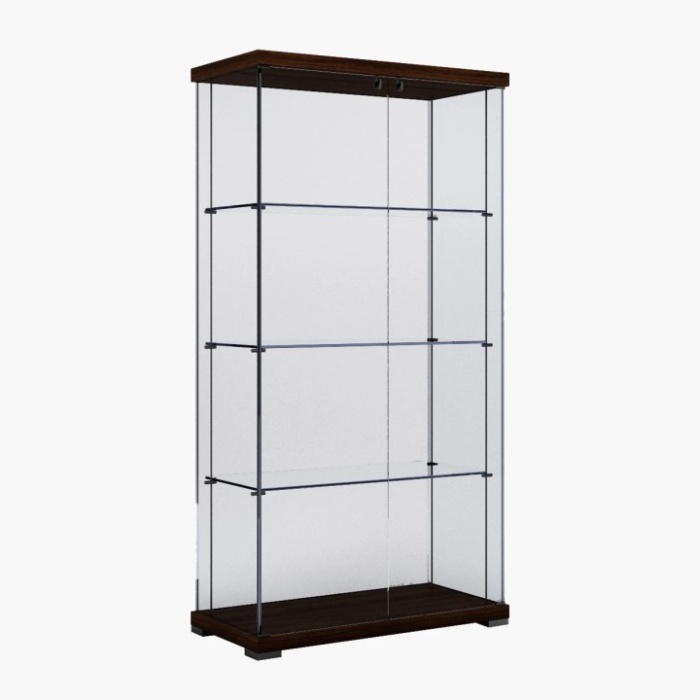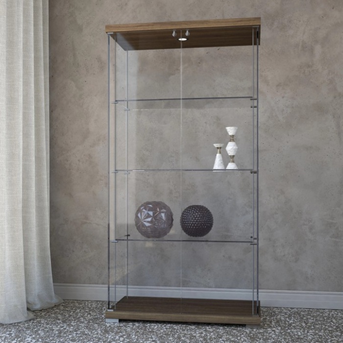 Elegante vetrina con base e top in legno, struttura e ripiani in cristallo extrachiaro trasparente, pensata per chi desidera un arredo dallo stile raffinato ed essenziale. Ego Plus si distingue per la sua estetica pulita e luminosa, capace di valorizzare ogni oggetto esposto grazie alla luce LED integrata, che ne esalta forme, colori e dettagli.