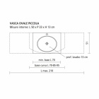 Piano top in teknoril bianco opaco con vasca ovale piccola L106 x Sp. 1,2 cm