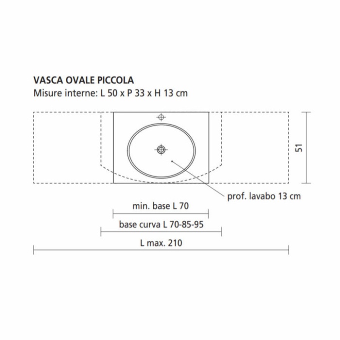 Dimensioni base portalavabo sospesa e.Gò Nodo Step mod. 34