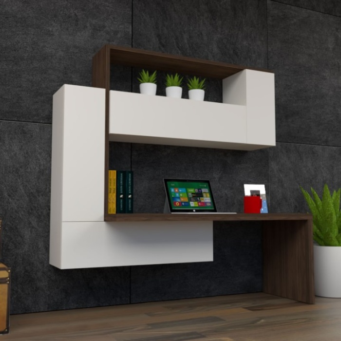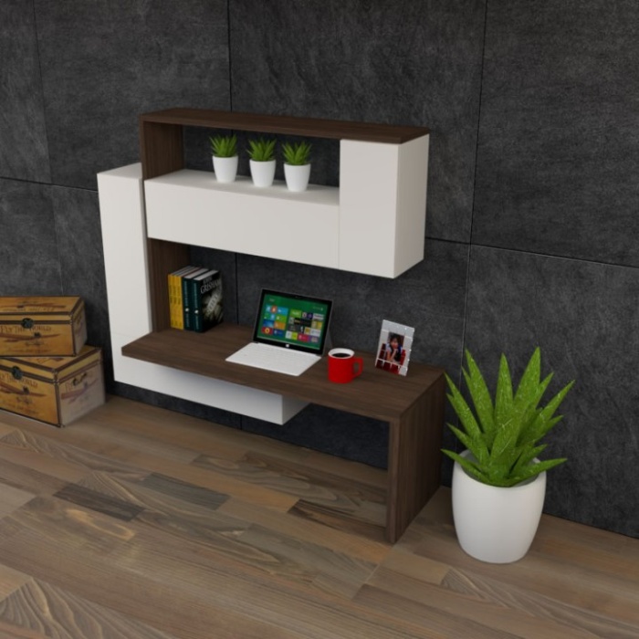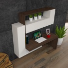 Le mensole e i contenitori intrecciati di questa composizione creano un'atmosfera dinamica e accattivante. La loro disposizione intelligente consente di organizzare gli oggetti in modo efficiente, mantenendo al contempo un aspetto pulito e ordinato. Puoi personalizzare questa composizione scegliendo tra una vasta gamma di finiture, dalle tonalità calde e avvolgenti alle opzioni più minimaliste e moderne. In questo modo, puoi adattare il tuo scrittoio all'arredamento esistente o creare un ambiente unico e personalizzato che rifletta il tuo stile distintivo.