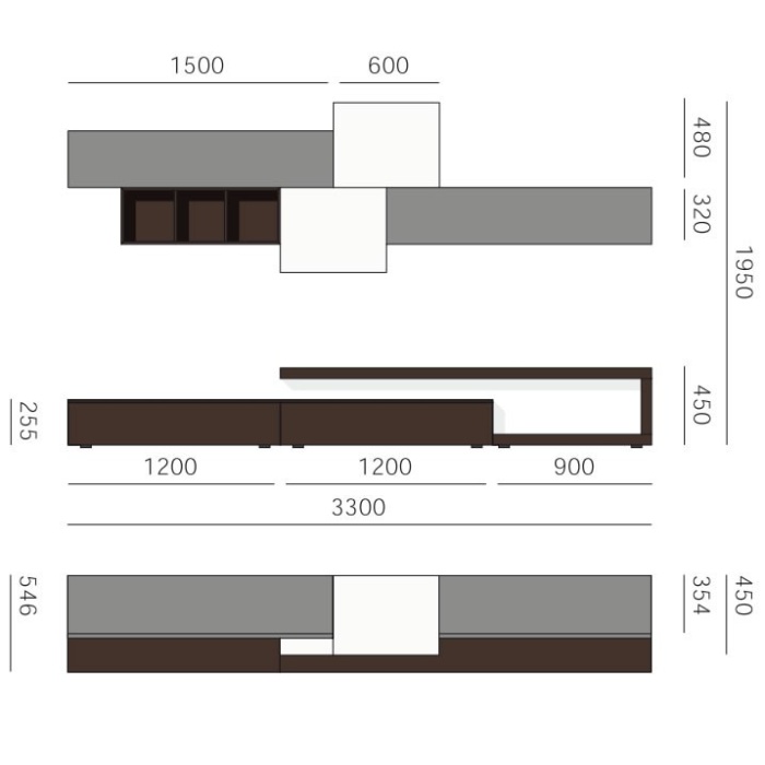 Sono realizzati con pannelli in particelle di *legno spessore di 20/35 mm rivestiti con nobilitazione sintetica anche laccata opaco, lucido e metallo o con piallaccio di legno verniciato. Per frontale lucido si intende l’esterno e relativi bordi lucidi, mentre l’interno è fornito con il corrispondente colore laccato opaco.