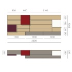 Struttura: (fianchi, divisori, schienali) materici ed essenze con venatura orizzontale - (ripiani) materici ed essenze con venatura orizzontale.Frontali: materici con venatura orizzontale fino ad altezza 1916 mm. Essenze con venatura orizzontale per i roveri tinti e noce o con venatura verticale per il rovere termotrattato.