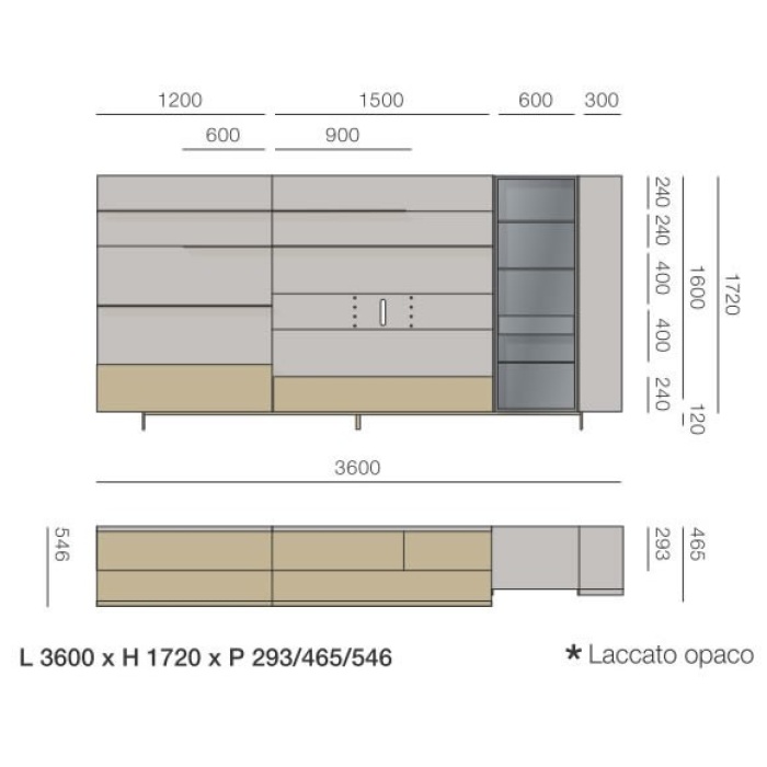 Sono realizzati con pannelli in particelle di *legno spessore di 20/35 mm rivestiti con nobilitazione sintetica anche laccata opaco, lucido e metallo o con piallaccio di legno verniciato. Per frontale lucido si intende l’esterno e relativi bordi lucidi, mentre l’interno è fornito con il corrispondente colore laccato opaco.