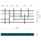 Struttura: (fianchi, divisori, schienali) materici ed essenze con venatura orizzontale - (ripiani) materici ed essenze con venatura orizzontale.Frontali: materici con venatura orizzontale fino ad altezza 1916 mm. Essenze con venatura orizzontale per i roveri tinti e noce o con venatura verticale per il rovere termotrattato.