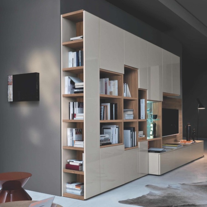 Sono realizzati con pannelli in particelle di *legno spessore di 20/35 mm rivestiti con nobilitazione sintetica anche laccata opaco, lucido e metallo o con piallaccio di legno verniciato. Per frontale lucido si intende l’esterno e relativi bordi lucidi, mentre l’interno è fornito con il corrispondente colore laccato opaco.