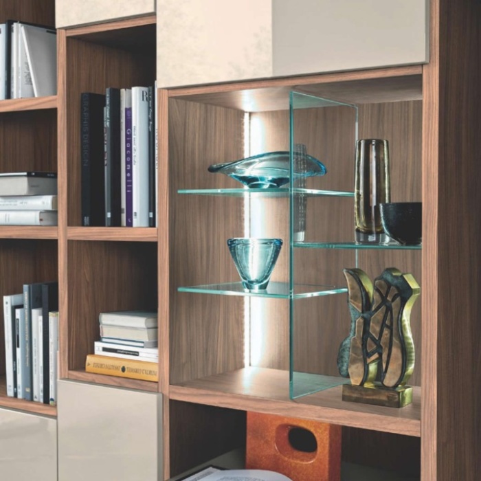 I ripiani interni sono in vetro temperato trasparente dello spessore di 6 mm.