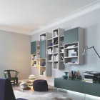 Per la scocca lucida di elementi con anta si intende l’esterno dei fianchi e relativi bordi perimetrali. L’interno e le schiene sono forniti con il corrispondente colore laccato opaco, mentre per elementi con cassetto l’interno è sempre tramato Juta.