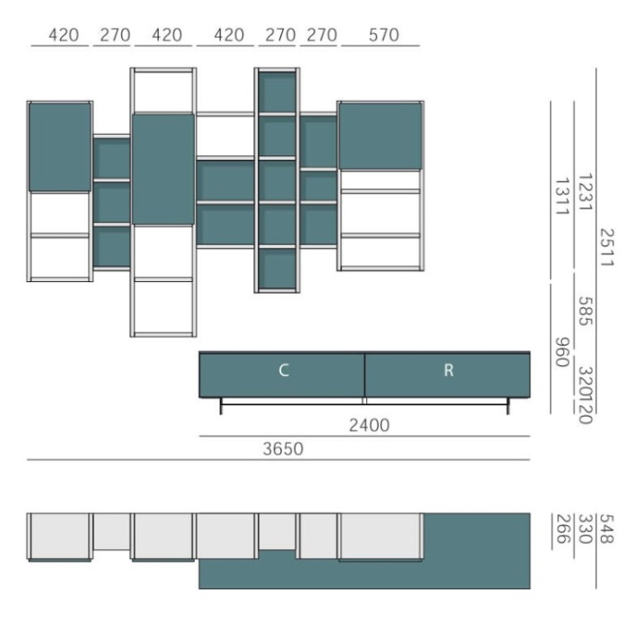 Struttura: (fianchi, divisori, schienali) materici ed essenze con venatura orizzontale - (ripiani) materici ed essenze con venatura orizzontale.Frontali: materici con venatura orizzontale fino ad altezza 1916 mm. Essenze con venatura orizzontale per i roveri tinti e noce o con venatura verticale per il rovere termotrattato.