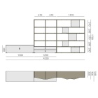 Struttura: (fianchi, divisori, schienali) materici ed essenze con venatura orizzontale - (ripiani) materici ed essenze con venatura orizzontale.Frontali: materici con venatura orizzontale fino ad altezza 1916 mm. Essenze con venatura orizzontale per i roveri tinti e noce o con venatura verticale per il rovere termotrattato.