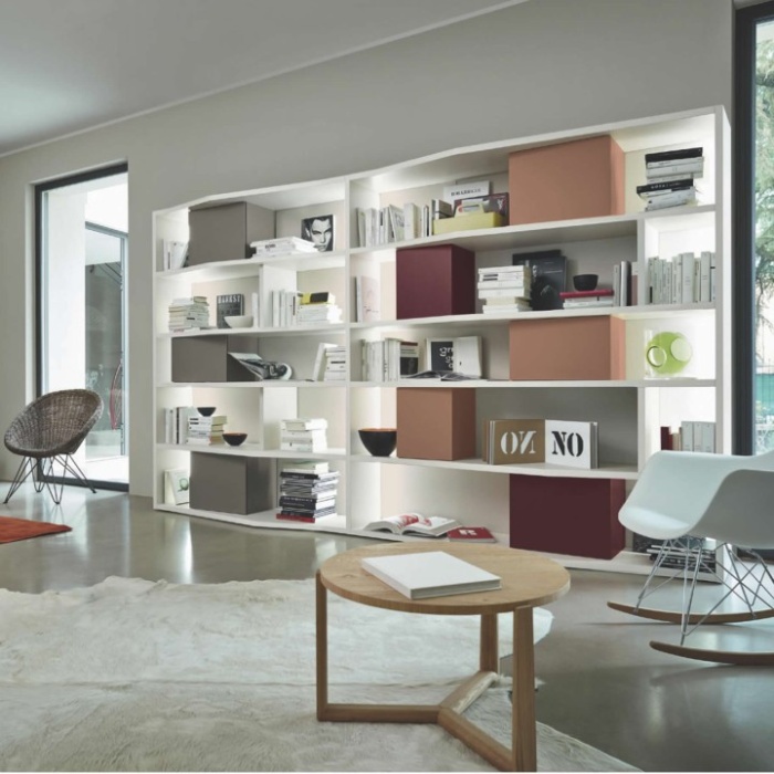 Sono realizzati con pannelli in particelle di *legno spessore di 20/35 mm rivestiti con nobilitazione sintetica anche laccata opaco, lucido e metallo o con piallaccio di legno verniciato. Per frontale lucido si intende l’esterno e relativi bordi lucidi, mentre l’interno è fornito con il corrispondente colore laccato opaco.