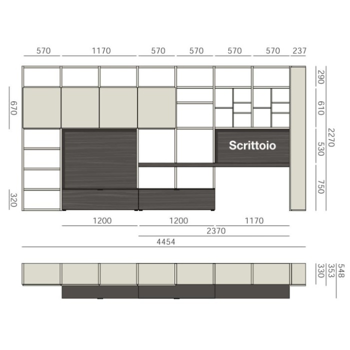 Sono realizzati con pannelli in particelle di *legno spessore di 20/35 mm rivestiti con nobilitazione sintetica anche laccata opaco, lucido e metallo o con piallaccio di legno verniciato. Per frontale lucido si intende l’esterno e relativi bordi lucidi, mentre l’interno è fornito con il corrispondente colore laccato opaco.