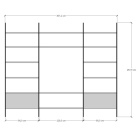 Il sistema Uniko si compone di un montante verticale in alluminio fissato con tasselli al muro tramite almeno 2 traversi orizzontali. Il montante ha due scanalature nelle quali si possono far scorrere, per tutta l’altezza, i supporti forniti per ripiani e contenitori base. I supporti si fissano alla quota desiderata tramite apposita vite.