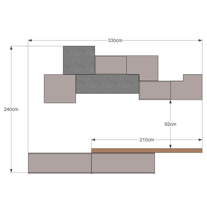 L.330 cm - H.240 cm - P.61/48/35 cm