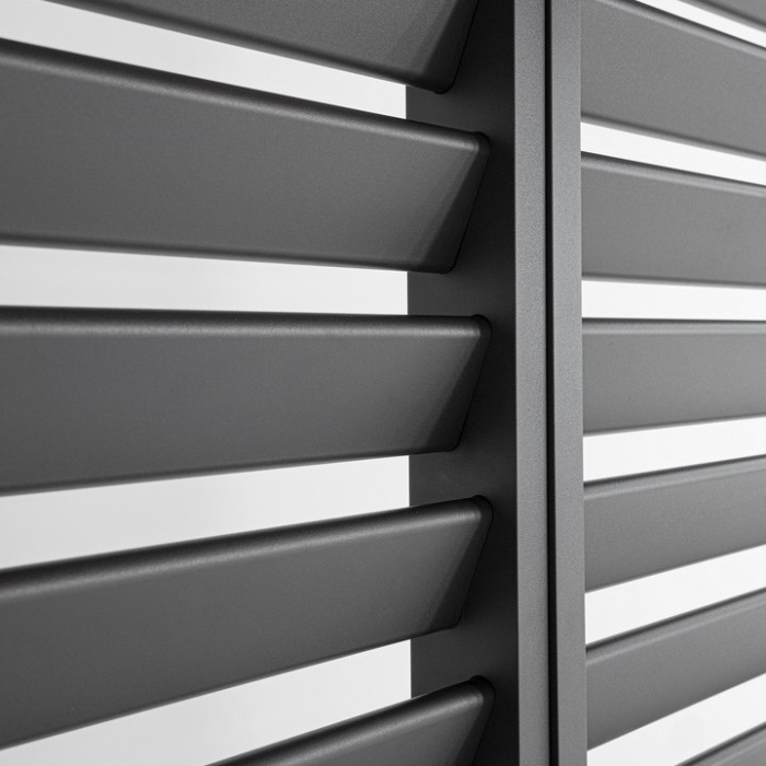 Il Frangisole Laterale Pergola Ocean 123 cm Antracite è un accessorio pensato per migliorare il comfort e la funzionalità della tua pergola, offrendo una barriera efficace contro vento, sole e sguardi esterni. Realizzato in alluminio verniciato a polvere (poliestere), abbina resistenza e leggerezza in un design sobrio ed elegante, perfettamente coordinato con lo stile della linea Ocean.