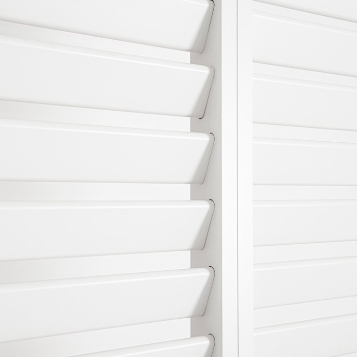 Pensato per un utilizzo modulare, il frangisole può essere impiegato singolarmente, per coprire un angolo, oppure in serie, per chiudere completamente un lato da 4 metri. La viteria in acciaio inox garantisce durata e resistenza nel tempo, anche in ambienti esterni esposti.
