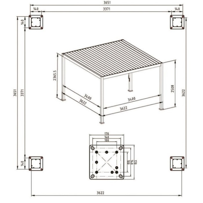 Pergola Ocean 3,6 x 3,6 m Natural-Antracite