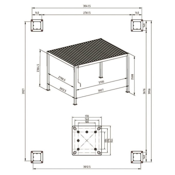 I pali portanti da 111x111 mm e i traversi da 140x75 mm assicurano una stabilità eccellente, mentre il tetto lamellare è composto da lame frangisole a doppio strato da 173x30 mm, regolabili tramite una comoda manovella. Questo sistema consente di gestire l’ingresso di luce e la ventilazione in base alle condizioni meteo o alle preferenze personali.