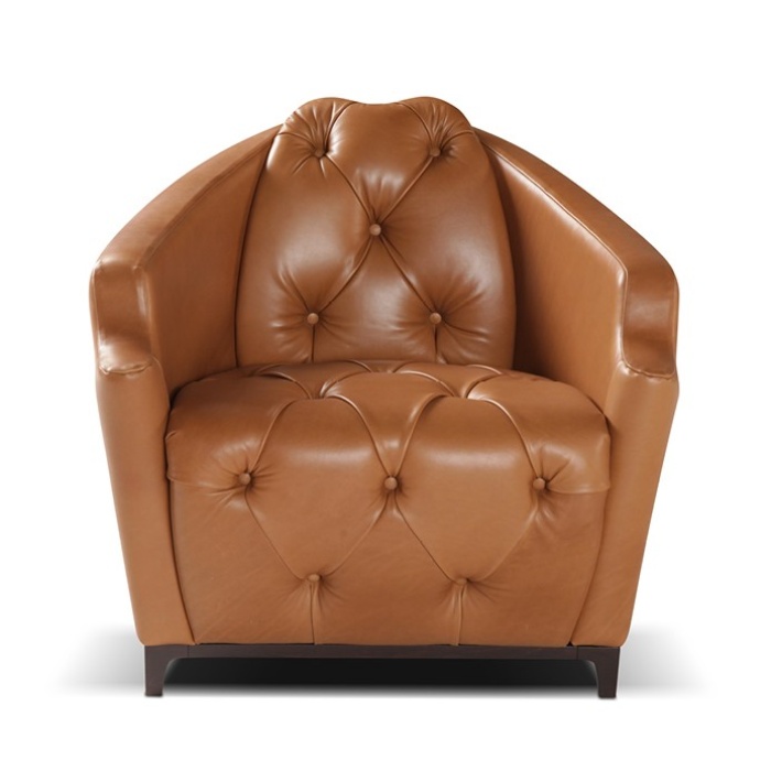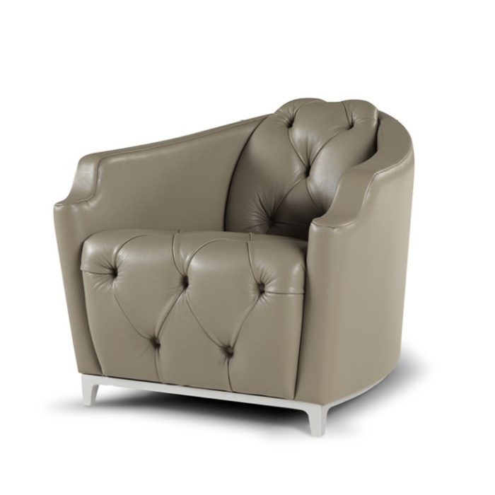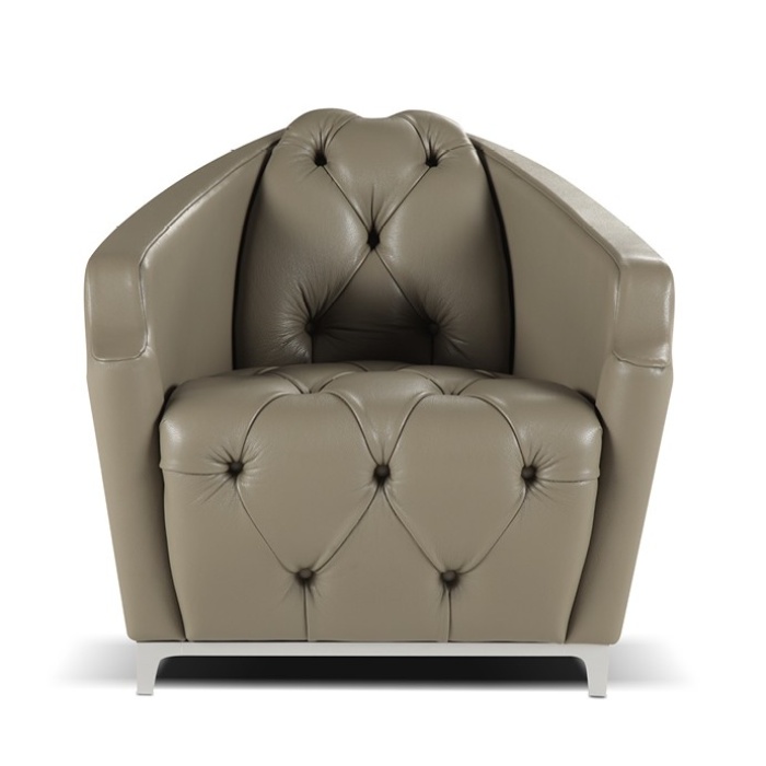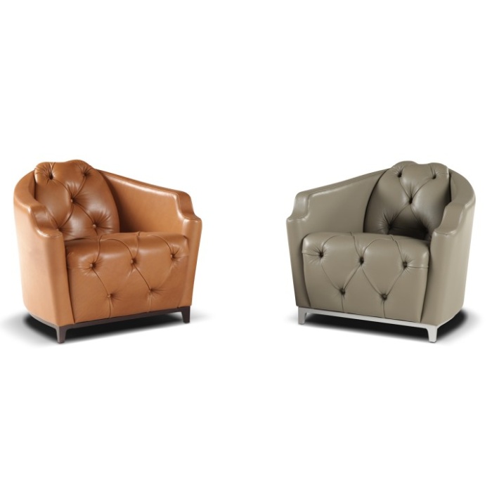 Caratterizzata dalla lavorazione capitonné che ne esalta seduta e spalliera, si riconosce dal dettaglio del bracciolo che ne disegna il profilo con una linea sinuosa che invita al relax.