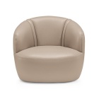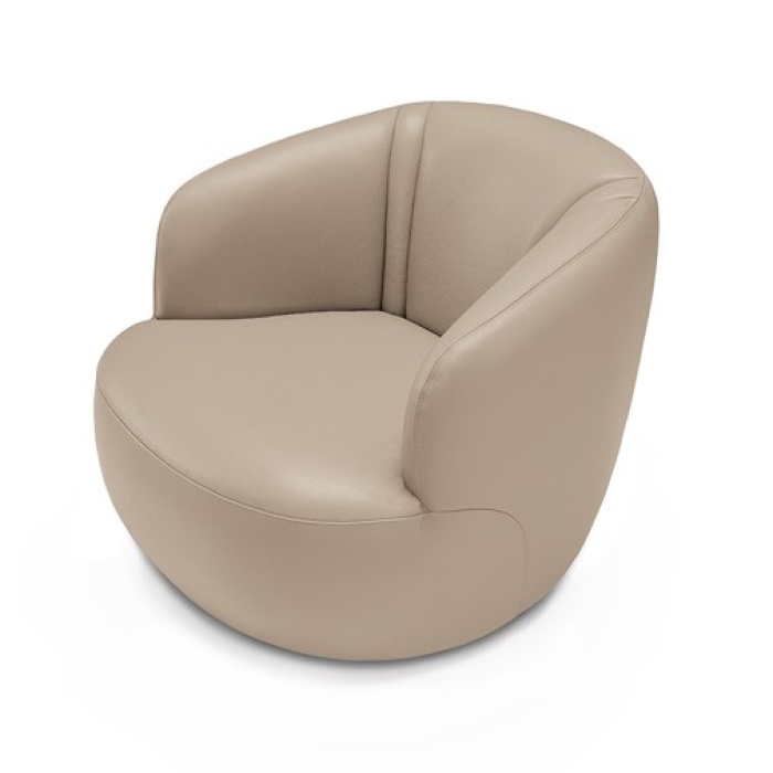 L’imbottitura in poliuretano espanso su braccioli, seduta e spalliera offre un sostegno ottimale, bilanciando perfettamente morbidezza e stabilità. Il rivestimento, disponibile in pelle o tessuto, esalta le forme tondeggianti e può essere impreziosito da una cucitura a contrasto che mette in risalto i dettagli sartoriali.