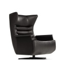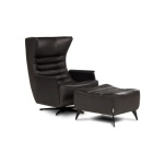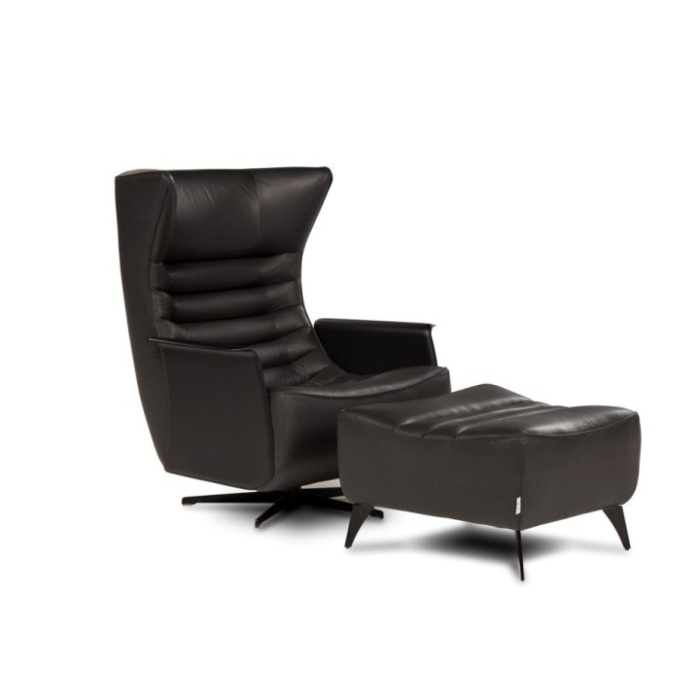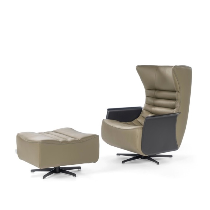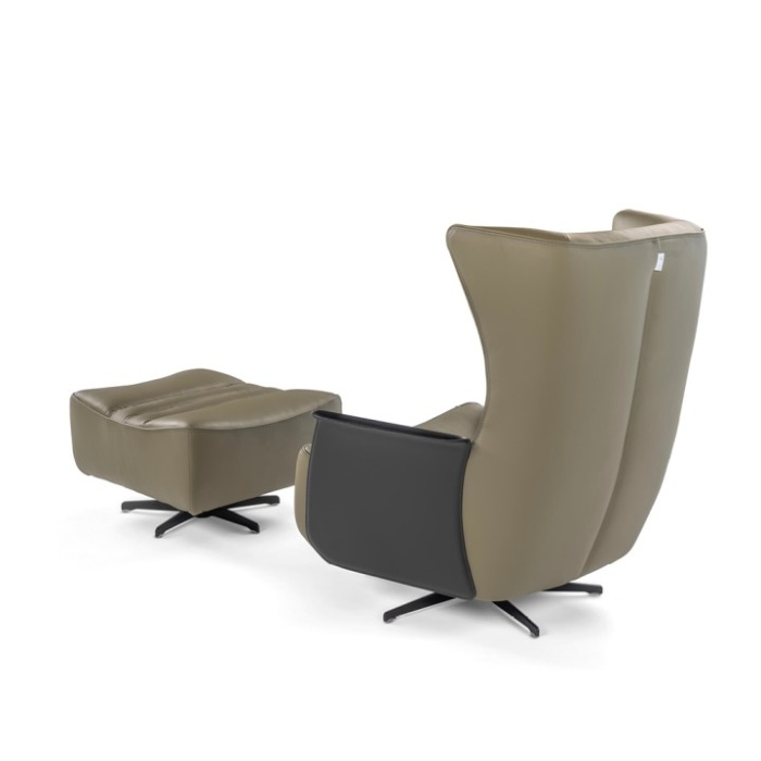 Poltrona e pouf sono disponibili nella versione fissa con piede in metallo o nella versione swivel che poggia su base a razze, adatta anche ad un contesto contract.