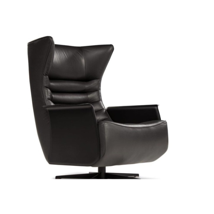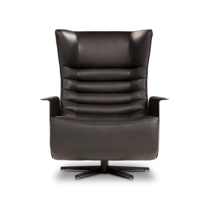 In entrambe le versioni, fissa o swivel, la Gerrit può essere dotata di braccioli in cuoio rigenerato.