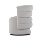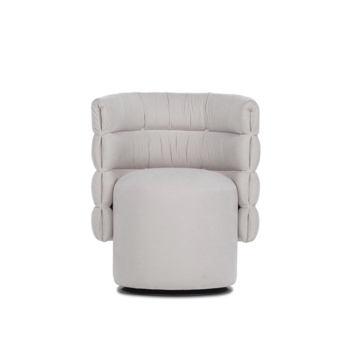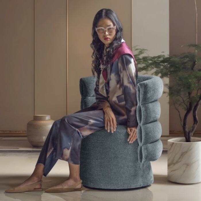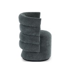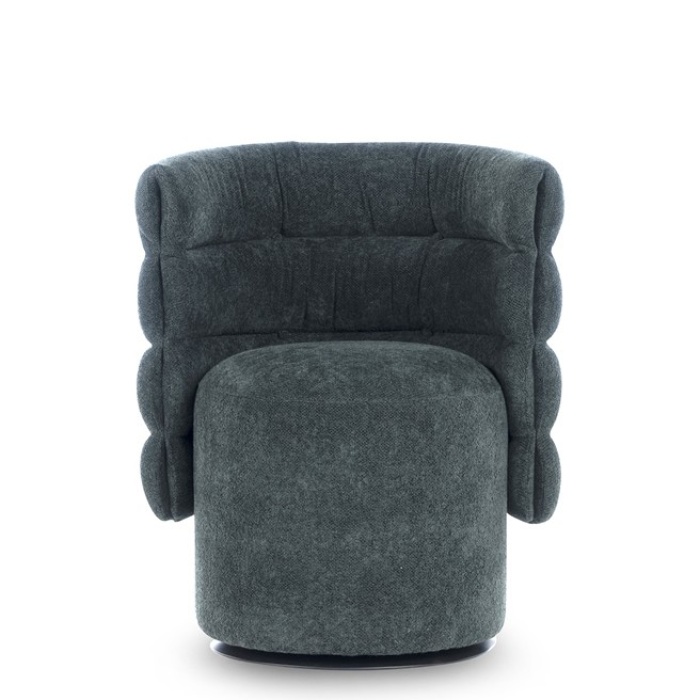 La seduta rimane invariata nella sua classica forma a coda e l’abito da sera nella Lady G viene “ricoperto” da un morbido piumino trapuntato, che ricorda quelli delle ultime fashion collection e che ne costituisce la spalliera.