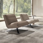 Il rivestimento, disponibile in pelle o tessuto, può essere impreziosito da una cucitura a contrasto che ne esalta le linee architettoniche.