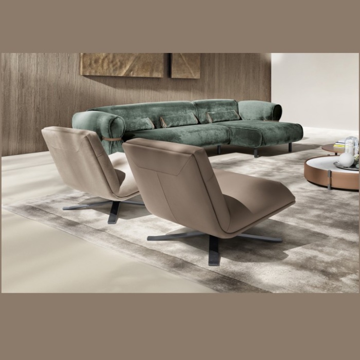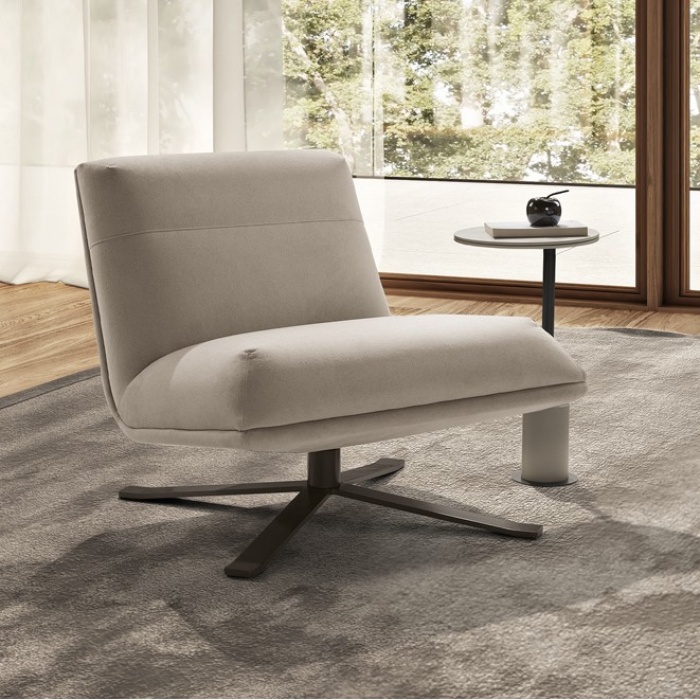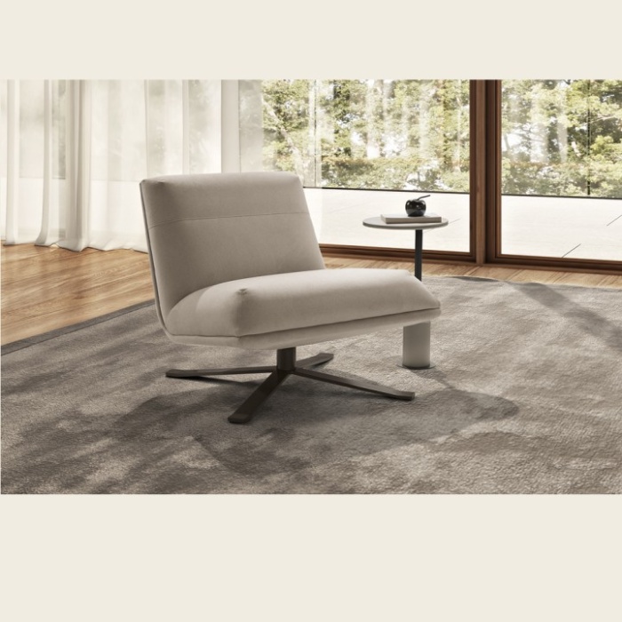 Il risultato è una poltrona che si adatta a contesti residenziali e contract, perfetta per reception, lounge aziendali o spazi domestici di tendenza.