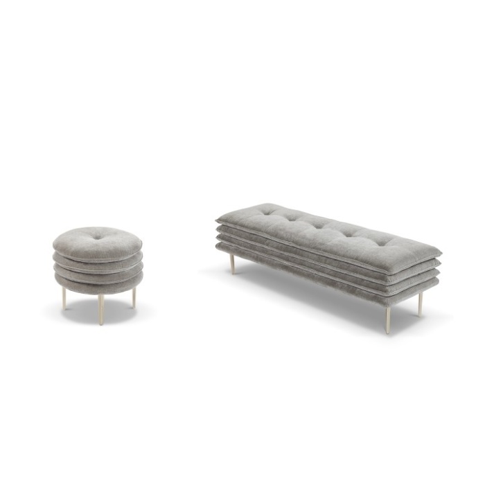 Rispetto alle dimensioni contenute dei Pouf e Chaise Longue, la bench è una versione più lunga e meno profonda e può essere utilizzata come panca nella zona giorno o come fondoletto per arredare la zona notte.