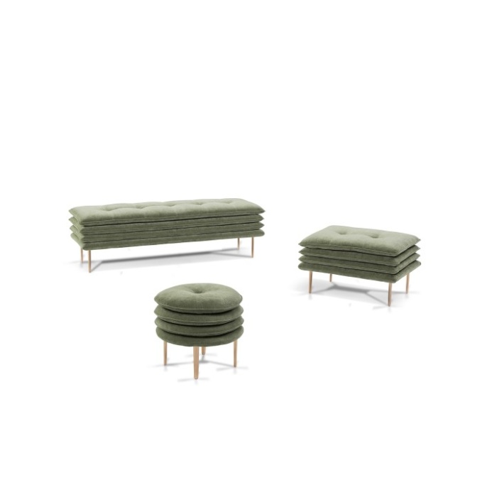 Il modello Mater Familias è disponibile anche nelle versioni Pouf e Chaise Longue – presenti in forma rettangolare e tonda – e bench.