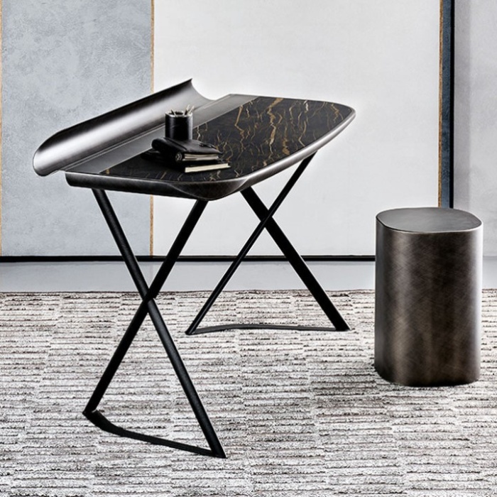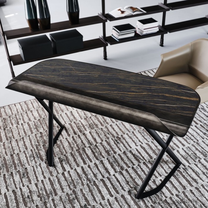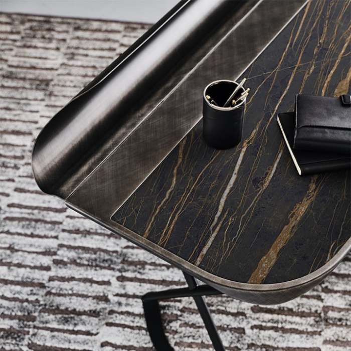 Grazie alle sue dimensioni contenute, Cocoon si inserisce facilmente anche negli ambienti più ridotti, trasformandosi in un piccolo scrittoio moderno, in una consolle trucco con luci o in un’elegante consolle da ingresso. Il piano può essere scelto in pregiate varianti di Ceramica Marmi o in raffinato cuoio, mentre la pratica gola portaoggetti aggiunge funzionalità e ordine, rendendo ogni utilizzo intuitivo e confortevole.