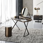 Grazie alle sue dimensioni contenute, Cocoon si inserisce facilmente anche negli ambienti più ridotti, trasformandosi in un piccolo scrittoio moderno, in una consolle trucco con luci o in un’elegante consolle da ingresso. Il piano può essere scelto in pregiate varianti di Ceramica Marmi o in raffinato cuoio, mentre la pratica gola portaoggetti aggiunge funzionalità e ordine, rendendo ogni utilizzo intuitivo e confortevole.