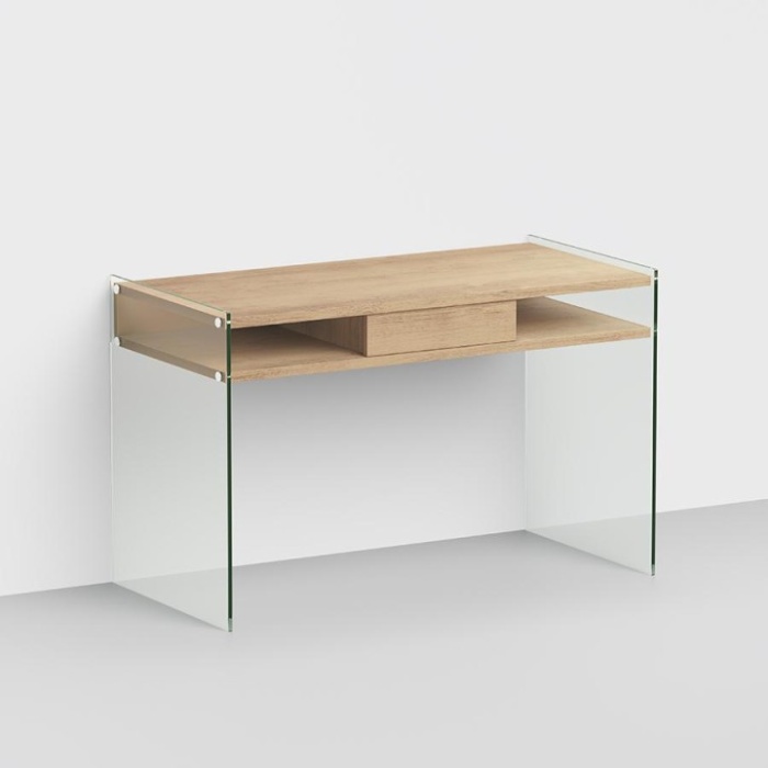 La Scrivania Space di Pezzani è progettata per ambienti moderni che richiedono eleganza e funzionalità in stile contemporaneo. Con linee essenziali e dettagli curati, Space si adatta a studi, uffici e spazi domestici contemporanei. La struttura portante è caratterizzata da due fianchi in vetro temperato da 10 mm, i due ripiani in laminato ecologico da 25 mm sono robusti e resistenti, ideali per sostenere libri, strumenti di lavoro e documenti. Il ripiano superiore funge da piano di lavoro, ampio e ben proporzionato, mentre un pratico cassetto push&pull offre uno spazio comodo per riporre materiali da ufficio, oggetti personali o piccoli dispositivi elettronici.