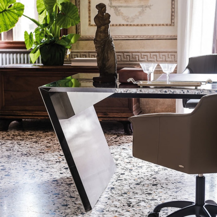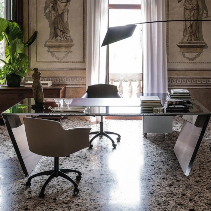 Vega è una splendida scrivania da ufficio disegnata da Giorgio Cattelan. Può essere arricchita da alcuni pratici accessori che la rendono un sistema ufficio funzionale, nonché un'elegante scrivania direzionale moderna.