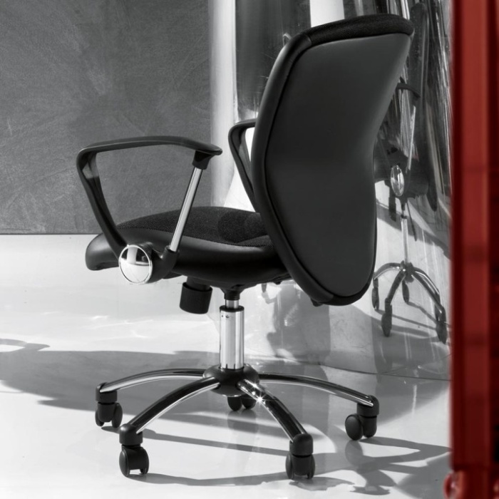 Il meccanismo basculante consente un movimento fluido dello schienale, adattandosi ai movimenti dell'utente, mentre l'alzo a gas permette di regolare l'altezza della seduta da 44 a 52 cm, per una postura ergonomica.