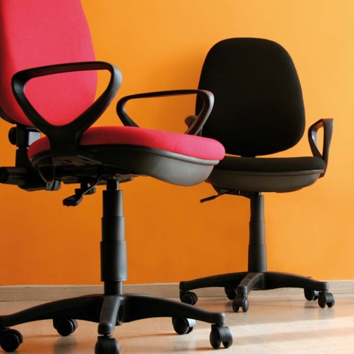 La sedia è disponibile in due varianti cromatiche: rosso e nero, permettendo di scegliere quella più adatta al proprio ambiente.
