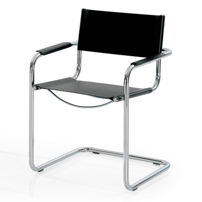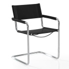 La struttura in metallo cromato garantisce robustezza e stabilità, mentre la seduta in cuoio rigenerato nero offre comfort e facilità di manutenzione.