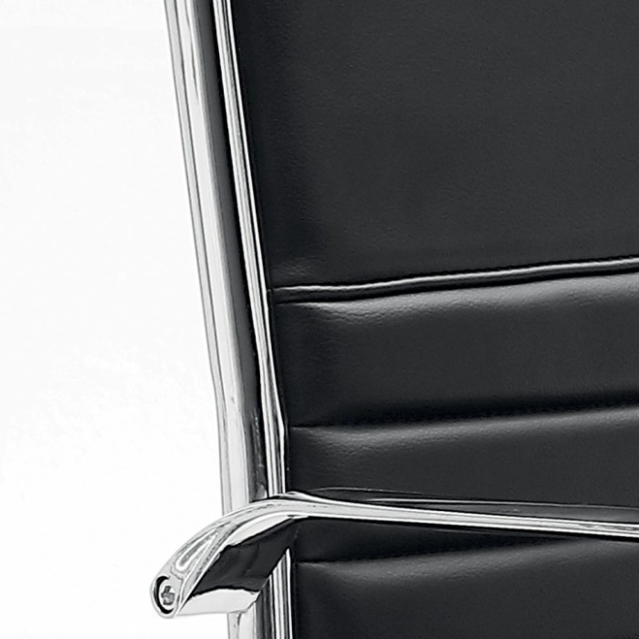 Realizzata con seduta e schienale in ecopelle disponibili in diverse colorazioni (bianco, nero, grigio titanio), garantisce comfort e facilità di manutenzione.