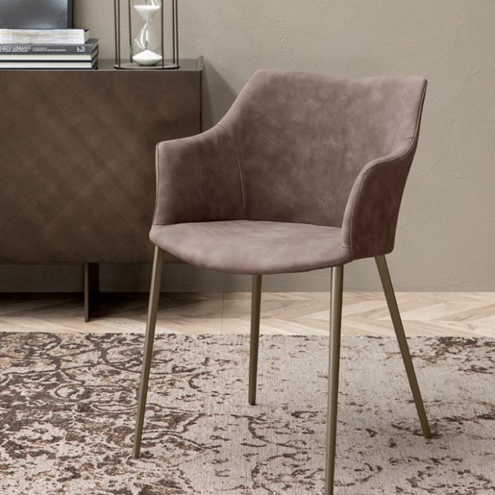 Realizzata con materiali di primissima qualità, Agata garantisce resistenza, durabilità e comfort superiore. La versione in tubo metallico verniciato, con piedini in nylon, assicura una struttura leggera ma stabile, mentre l’imbottitura accoglie con morbidezza, offrendo un sostegno ergonomico durante ogni seduta. Le finiture della struttura metallica includono grigio carbone, titanio, bronzo e oro opaco; nella versione in legno, è possibile scegliere tra noce canaletto, rovere scuro e frassino nero, per un’eleganza su misura.