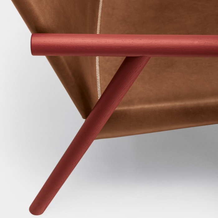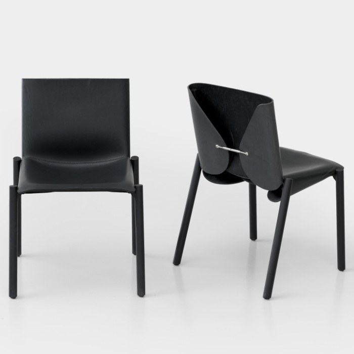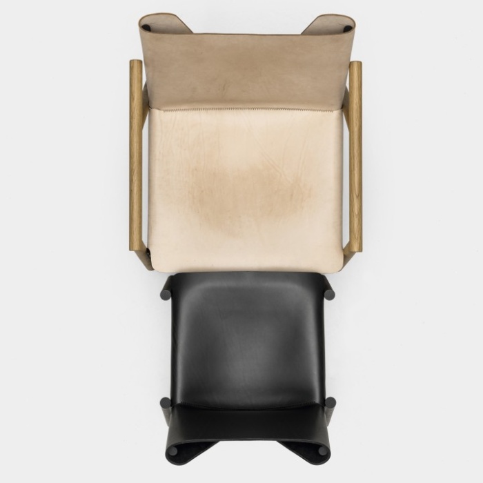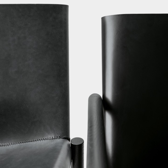 La sedia trae ispirazione dall’esperienza della storica conceria Presot®, l’unica in Italia a trattare ancora il cuoio naturale con metodi artigianali. Il materiale scelto racconta la storia del tempo: si ammorbidisce, cambia, si evolve con l’uso quotidiano, portando con sé i segni di chi lo vive. A questa base si aggiunge un ingegnoso dettaglio tecnico ispirato al mondo nautico: un sistema di tiranti che mantiene la giusta tensione del cuoio anche dopo anni, evitando cedimenti estetici e strutturali.