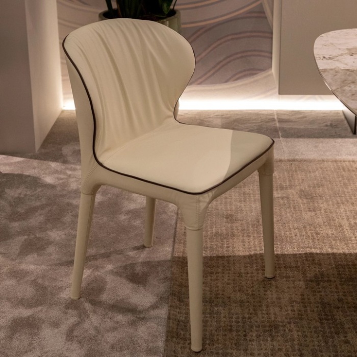 La seduta Bea Plus valorizza ogni spazio con un tocco glamour: il suo rivestimento sartoriale in pelle o tessuto è esaltato dalla struttura morbida ed elegante. Bea Plus è la versione completamente rivestita, disponibile in pregiate combinazioni di velluto, pelle o tessuto, per un effetto ancora più raffinato.