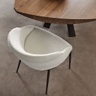 La poltroncina di design viene prodotta in due varianti: Camilla con gambe in legno pregiato, e Camilla ML con gambe in metallo, più leggera e maneggevole. Entrambe le varianti trovano il perfetto equilibrio tra la seduta voluminosa e le gambe aggraziate.